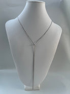 This lariat style necklace is simple yet elegant, with tiny c.z ‘ dangling from each end easily slides over your head with an adjustable sliding bead looks amazing with a choker or a smaller necklace! a must have for your jewelry collection!